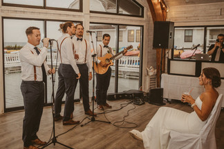 Per Jaclyn, their wedding was meant to feel like a celebration of love and happiness; as relaxed, intimate and as fun as possible. Jaclyn & Ben had already been married for one year (to the day!) so they had the flexibility to incorporate truly special flourishes like their friend unofficially officiating their ceremony or, quite unforgettably, Ben & the rest of Brookline Drive serenading Jaclyn with “She’s so Beautiful”.